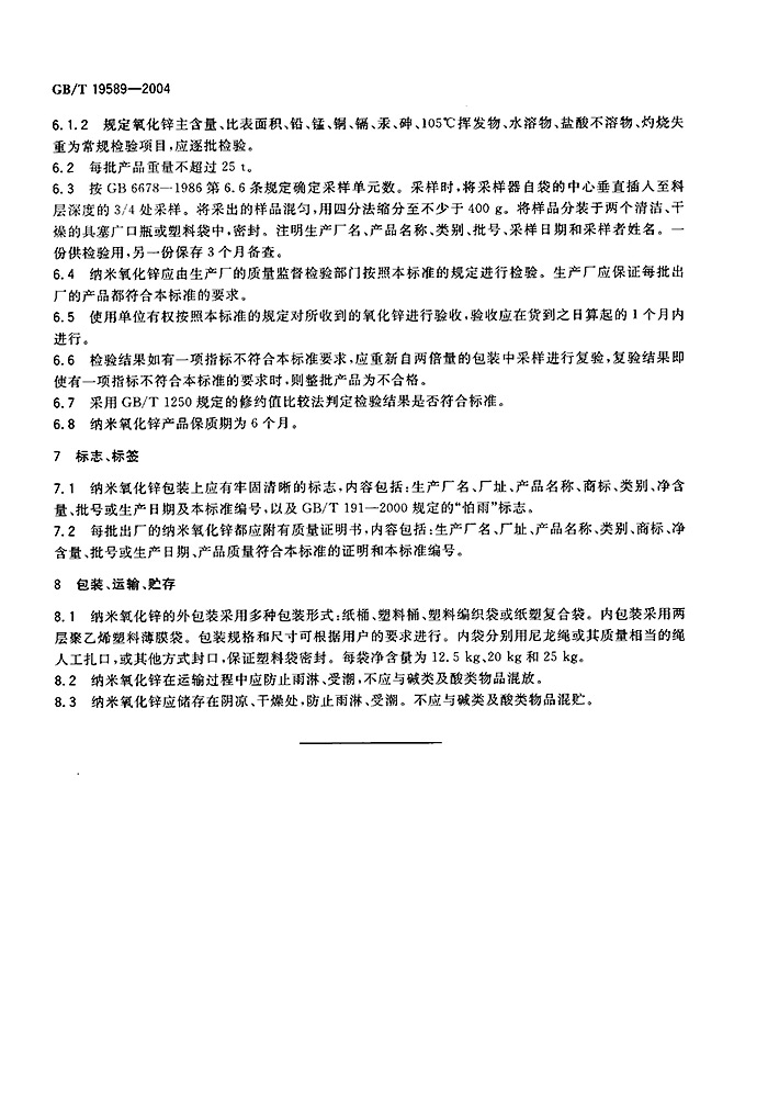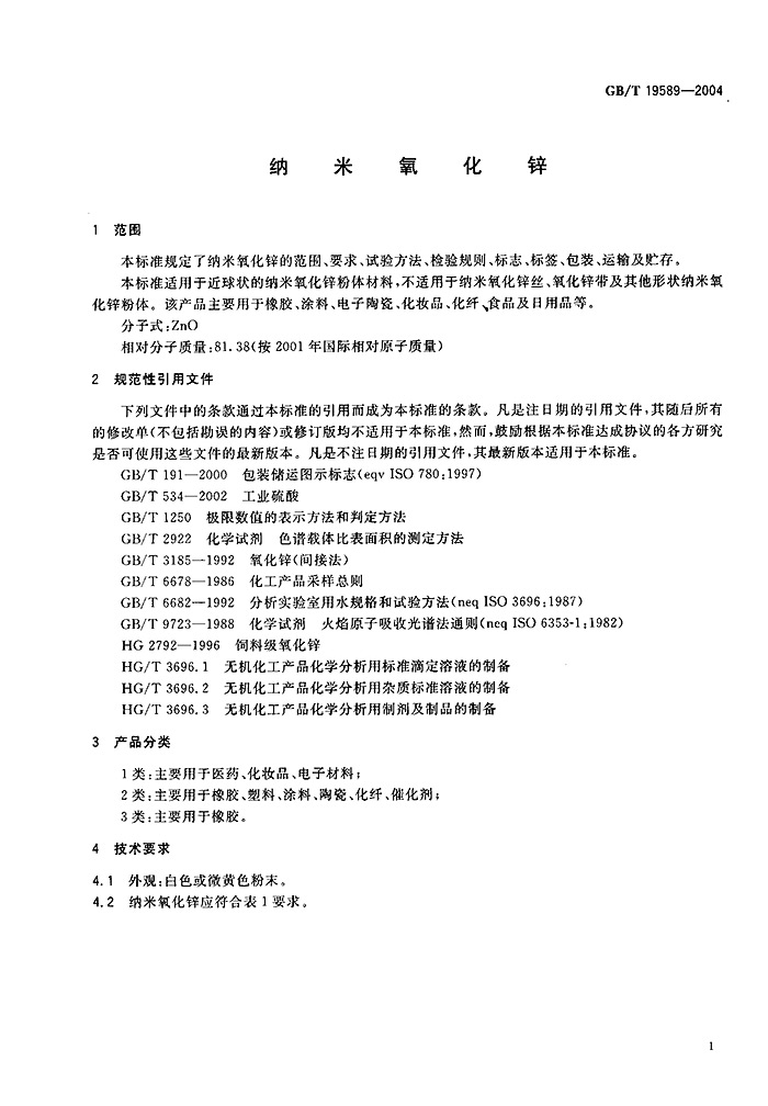 GBT19589-2004納米氧化鋅標(biāo)準(zhǔn)